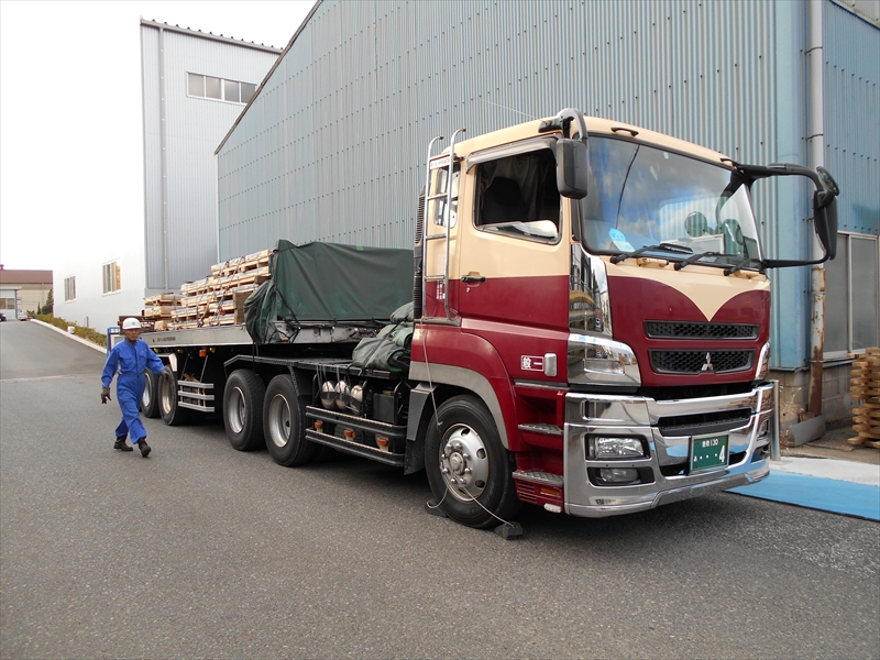 大阪地区での狭いお客様の工場であっても特注ショートトラックで納品できます。