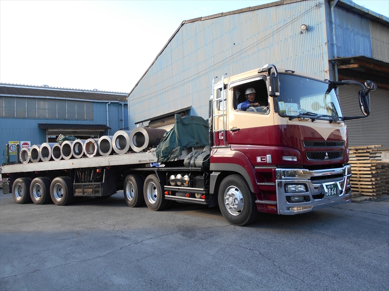 現在は、トレーラーでの大阪方面への鉄板、コイル等の鋼材輸送に従事しています。